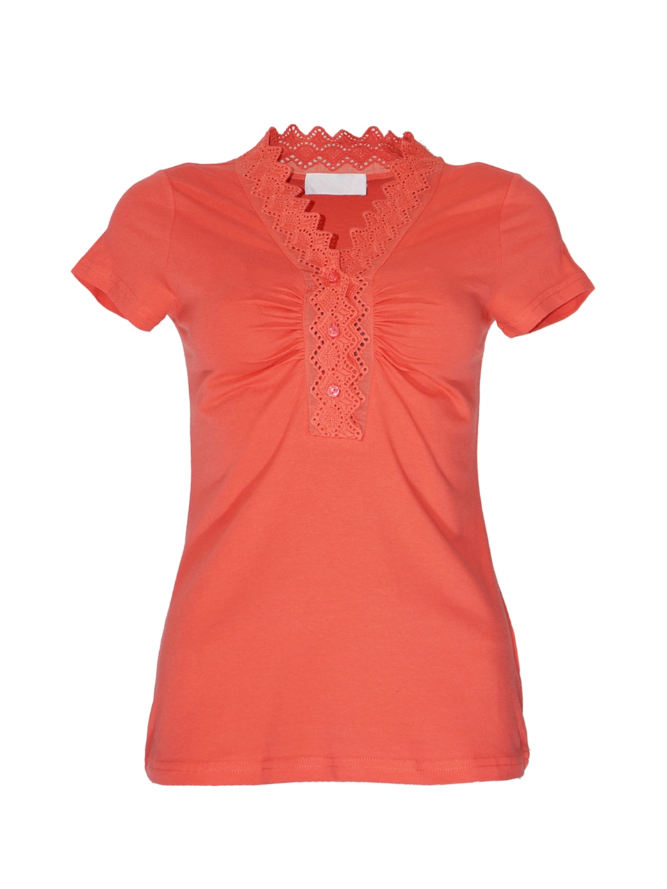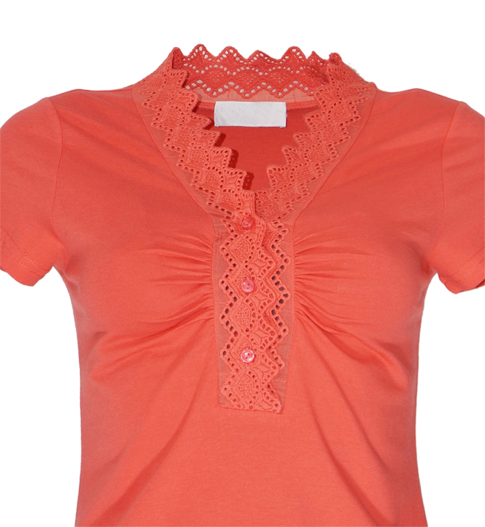 Yakası Dantelli Tişört - Narçiçeği (BGA178089)